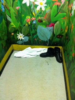 Einer der Fahrstühle, in dem sie hausen, hat als Rückwand eine Tür, die das Volumen des Fahrstuhls vergrößert wenn man sperrige Lasten transportieren möchte. Diese Tür ist abgeschlossen und in dem dahinterliegenden Raum scheint ihr Schlafzimmer zu sein. Manchmal lassen sie Teile ihrer Kleidung aus Versehen vor ihrer Schlafzimmertür liegen, wie folgendes Foto dokumentiert: