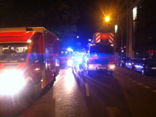 Meine Nachbarn wurden im Schlaf überrascht und mußten das Gebäude verlasssen. Polizei oder Feuerwehr stellten einen Bus bereit, in dem sie Platznehmen konnten. Über die genaue Ursache des Feuers war noch nichts bekannt. Gegen 3:30 Uhr gab die Einsatzleitung das Wohnhaus teilweise wieder frei und die Mieter der obigen Stockwerke konnten über die Feuertreppe in ihre Wohnungen.