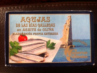 Ein Bekannter hatte mir vor kurzer Zeit nun eine Dose mit Nadelfischen und eine Dose mit Kammmuscheln geschenkt. Er selber ist im Essen sehr wählerisch von daher ist es für mich zunächst etwas verwunderlich, daß er Fisch in Dosen überhaupt im Haushalt hat. Das klärte sich beim Blick auf die Produkte schnell auf. Er hat die Dosen aus der spanischen Heimat seiner Familie, aus Galicien, mit nach Deutschland gebracht. Er kennt sowohl die Fischerei als auch die Verarbeitungsbedingungen in der Herkunftsregion genau und hat natürlich die Produkte getestet.