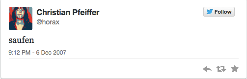 Mein erster Tweet war auf einer Weihnachtsfeier am 6.12.2007 zu „fortgeschrittener Stunde“. Der Inhalt spricht für sich: